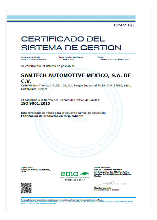 «Con el liderazgo del director de la planta, el soporte del staff japonés y más que nada el staff local en México, hemos integrado una sólida familia SAMTECH, hemos crecido y se ha logrado reforzar la experiencia de la planta para ser la mejor empresa de forja en México».